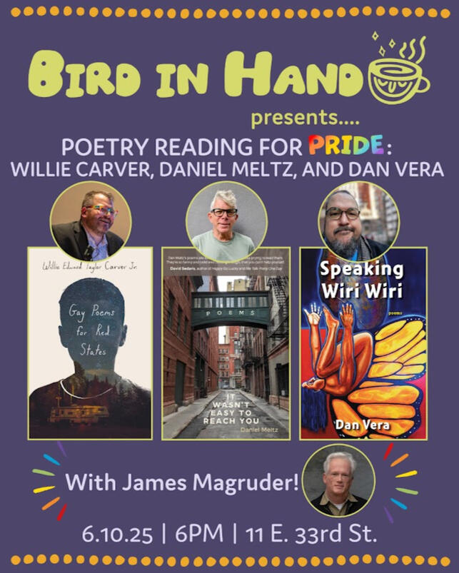 “The poetry of Dan Vera is clear, strong, honest and funny. He’s the sharp-eyed observer in the corner who doesn’t say much, but makes every word count. He handles the political and the personal with equal grace, even as the lines blur. Dan Vera is damn good company. You’ll see.”
