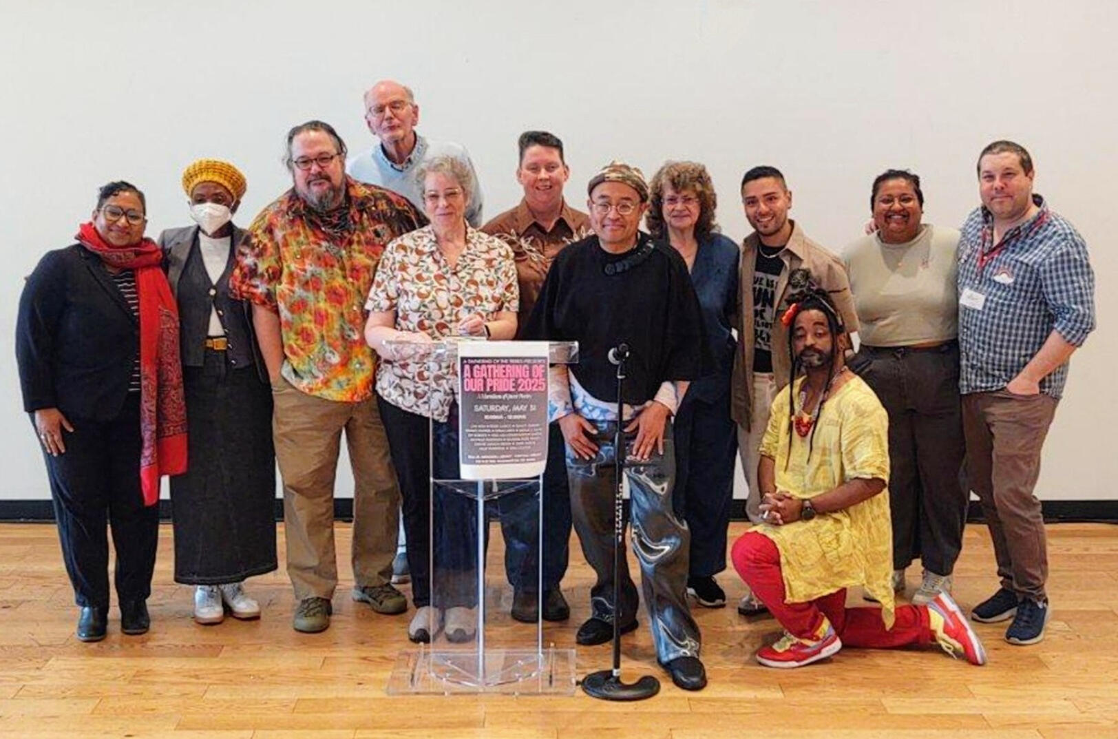 Left to Right: Sunu P. Chandy, Michelle Parkerson, Dan Vera, Hiram Larew, Kim Roberts, Tanya Olson, Regie Cabico, Saundra Rose Maley, AGG (aka Adrian Gaston Garcia), Dwayne Lawson-Brown, Ishanee Chanda, and Jona Colson.